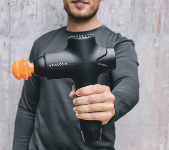 En massasjepistol hjelper til med å løse opp muskelknuter og spenninger,